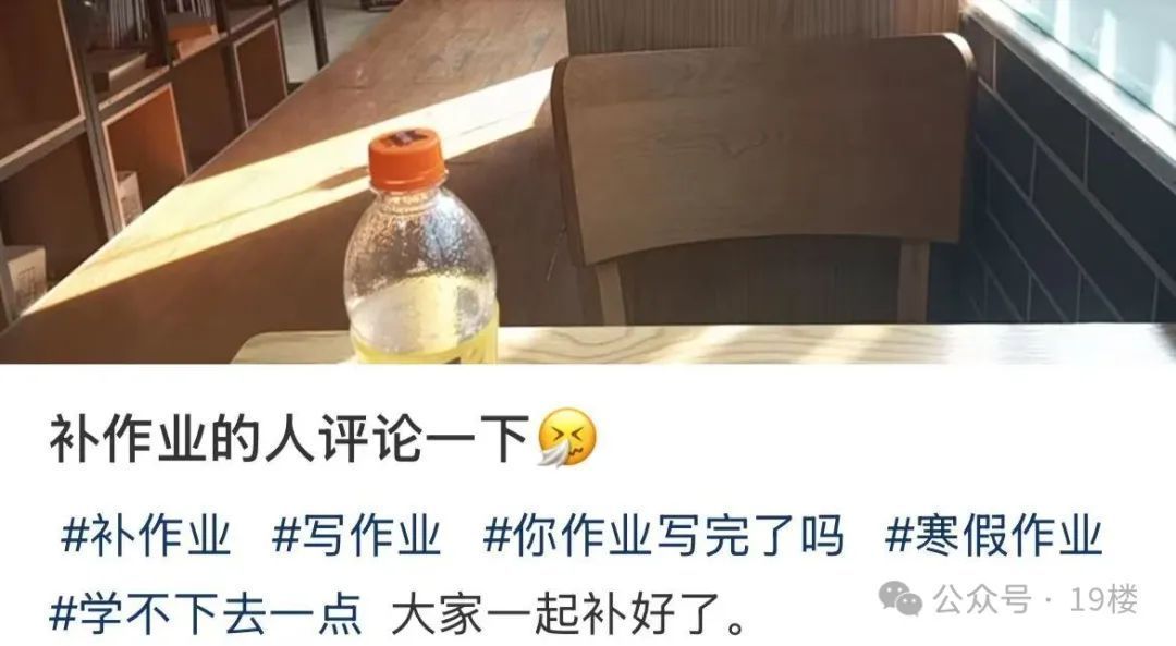 有意思的是,补作业的盛况几乎是不分地域的狂热,随手在社交平台上搜索“补作业”,全国的孩子们几乎都动作一致低头狂写,而且这个时候赶作业也不讲究地点了,车上、咖啡馆、肯德基、书店、图书馆…有家长更是直接总结为:女娲补天!